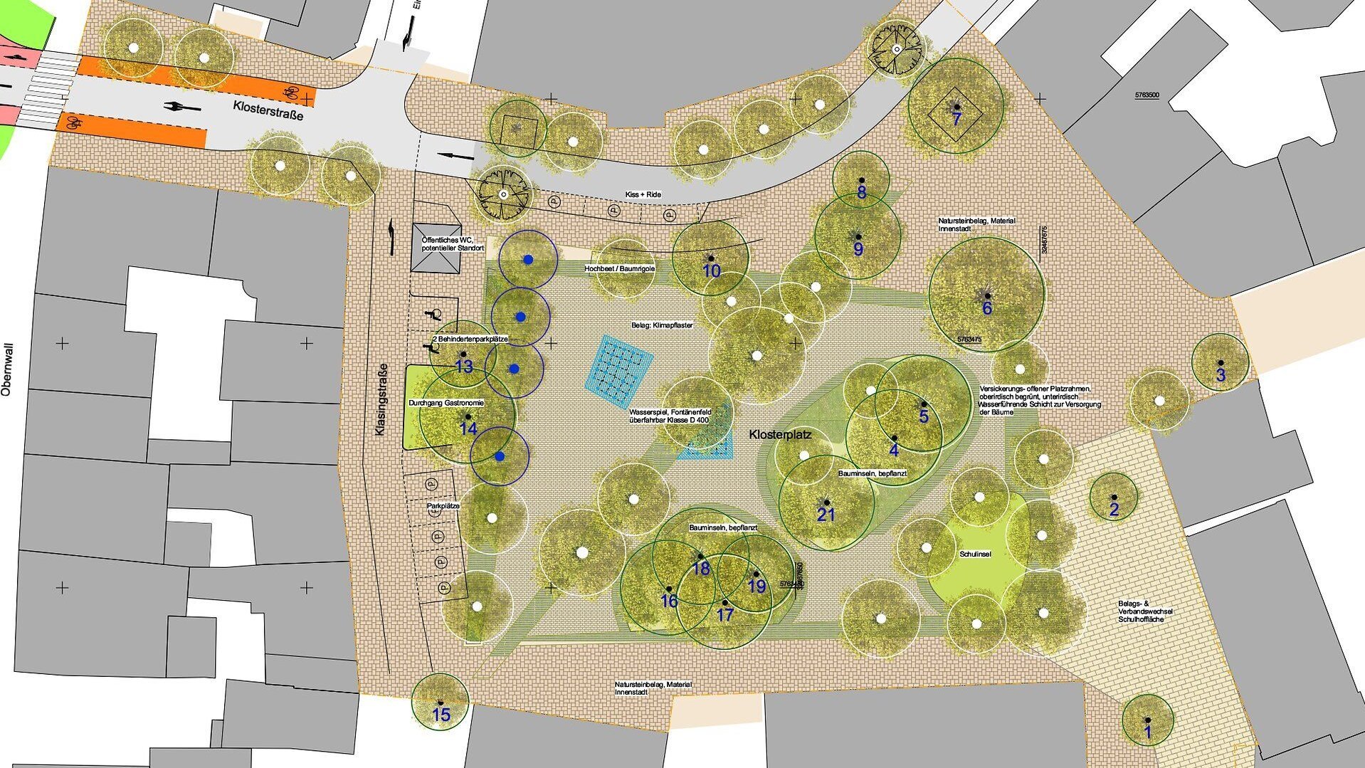 Die Pläne zur Umgestaltung des Klosterplatzes nehmen Form an – das altstadt.raum-Kernteam hat jetzt eine bevorzugte Variante beschlossen, die nun der Politik vorgelegt wird. Der Klosterplatz soll grüner werden mit neuen Bäumen, aber weiter für Veranstaltungen nutzbar bleiben. Ein öffentliches WC soll kommen und die Klosterschule bekommt einen offenen, aber abgrenzbaren Schulhof.