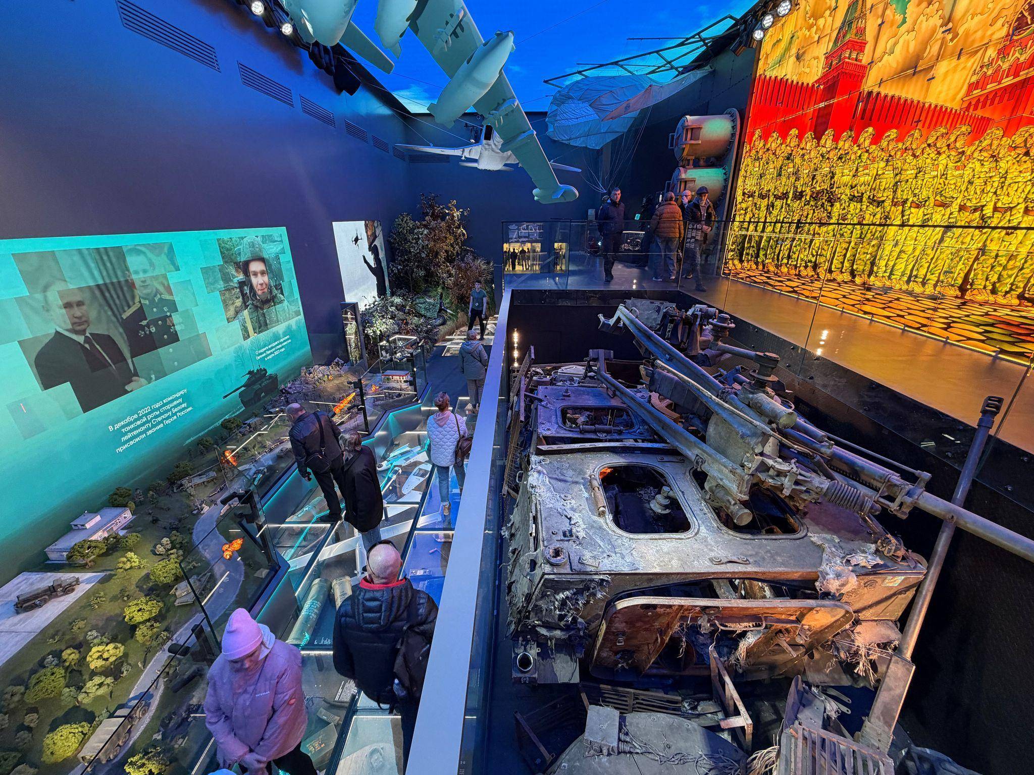 Moskau/Berlin (dpa) - Selbst an diesem sonnigen Frühlingssonntag ist einiges los in der schillernden Schau in Moskau zum Angriffskrieg gegen die Ukraine. Kinder in Gruppen, Familien und Senioren schauen sich Kriegsgerät, nachgestellte Schlachtfeldszenen und Originalaufnahmen von Frontkämpfen an. In dem Pavillon auf dem Ausstellungsgelände WDNCh werden die Soldaten als Helden verehrt. Diese und viele andere solcher Propaganda-Schauen im Land sollen nicht zuletzt Akzeptanz schaffen für die Kriegsheimkehrer – dabei warnen Experten vor möglichen Problemen, die sie mit nach Hause bringen.