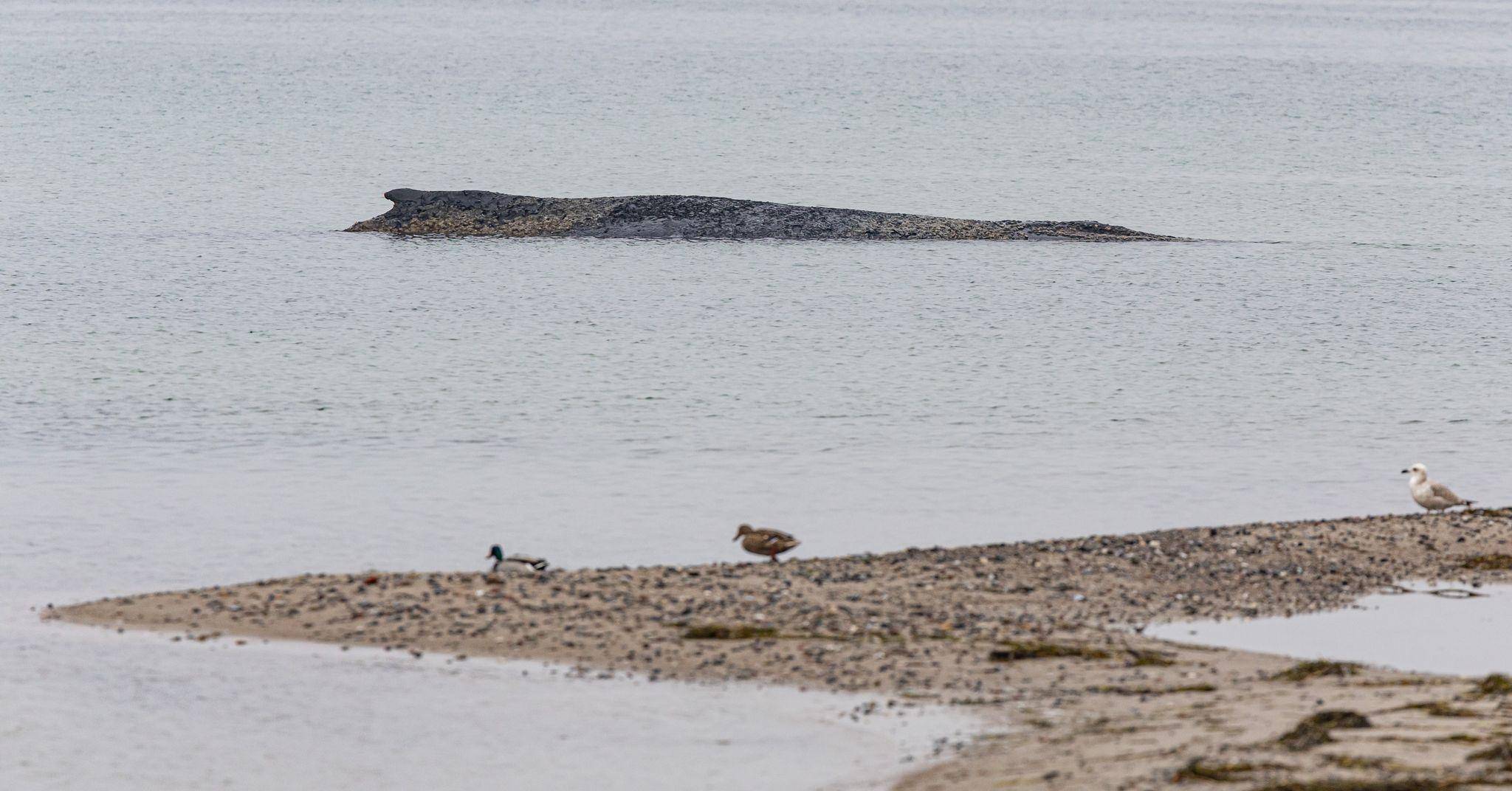 Das Hochwasser gegen Mitternacht habe nicht ausgereicht, dass sich das etwa zehn Meter lange Tier aus eigener Kraft hätte freischwimmen können, sagte ein Polizeisprecher am frühen Morgen. Der Meeressäuger war nach Polizeiangaben in der Nacht zum Montag im Wasser vor dem Ortsteil Niendorf entdeckt worden.