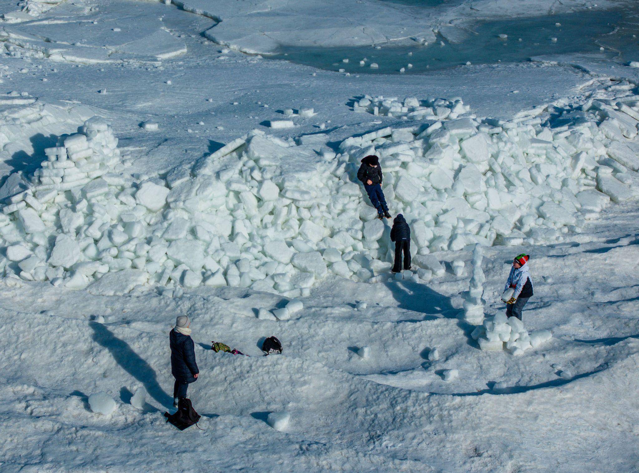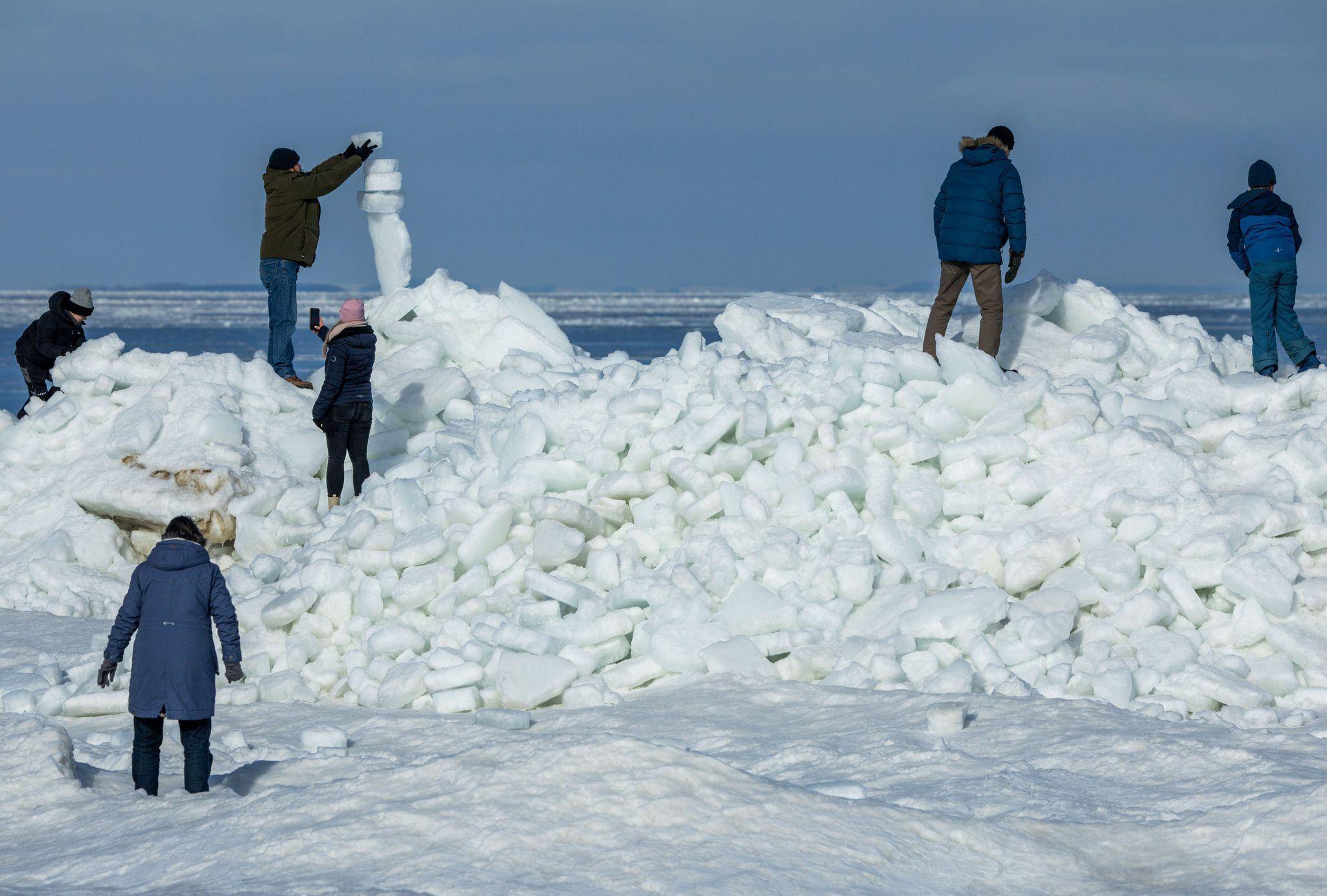 Der Andrang von Urlaubern und Einheimischen sei groß, hieß es beim Fremdenverkehrsamt Zempin. Das Iglu habe ein junges Pärchen gebaut. «Das hat schon ein paar Stunden gedauert, bis es fertig war», sagte ein Gemeindemitarbeiter. Er schätzte, dass sich die Eisberge derzeit auf vier bis fünf Meter Höhe auftürmen. «Das ist schon ein seltenes Naturschauspiel.»