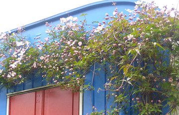 Alte Wand, neuer Look: Clematis begrünen senkrechte Strukturen. Foto: Jutta Langheineken