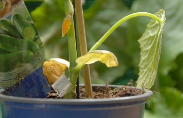 Veredelt: Vom Clip geschützt wachsen die beiden Pflanzen zusammen. Foto: Jutta Langheineken