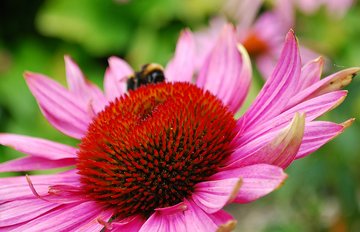 Biene im Schlaraffenland: Im Sonnenhut ist reichlich Nahrung zu finden. Foto: Jutta Langheineken