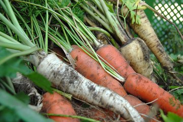 Lässt man die Erde an den Wurzeln bleiben Möhren, Pastinake oder Petersilien-wurzel in sandgefüllten Eimern oder Erdmieten mehrere Monate lang frisch. Foto: Gartencenter Brockmeyer