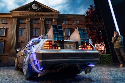 Kenner und Kennerinnen des Film-Klassikers aus den 1980er und 90er Jahren werden darin viele Details wiederentdecken: den Fluxkompensator, den Blitzableiter, grell leuchtende Nachbauten der Plutonium-Ampullen und natürlich die berühmte Zeitanzeige, die selbstverständlich auf den 21. Oktober 1985 eingestellt ist.