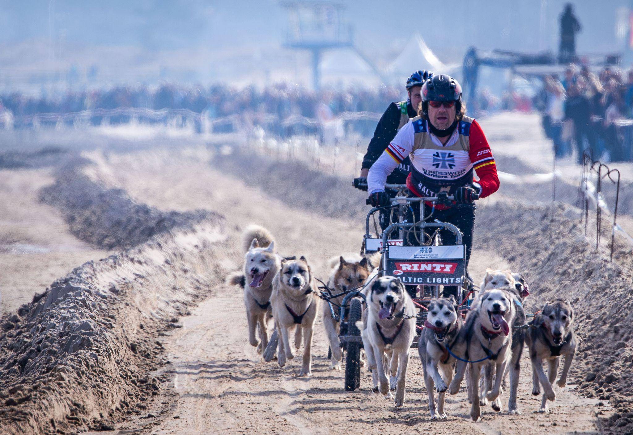 Bei Frühlings-Sonnenschein beobachteten viele Zuschauer das Rennen am Strand von Heringsdorf. Die Teilnehmer jagten dabei nicht auf Kufen, sondern auf Rädern über eine eigens präparierte Sandpiste.
