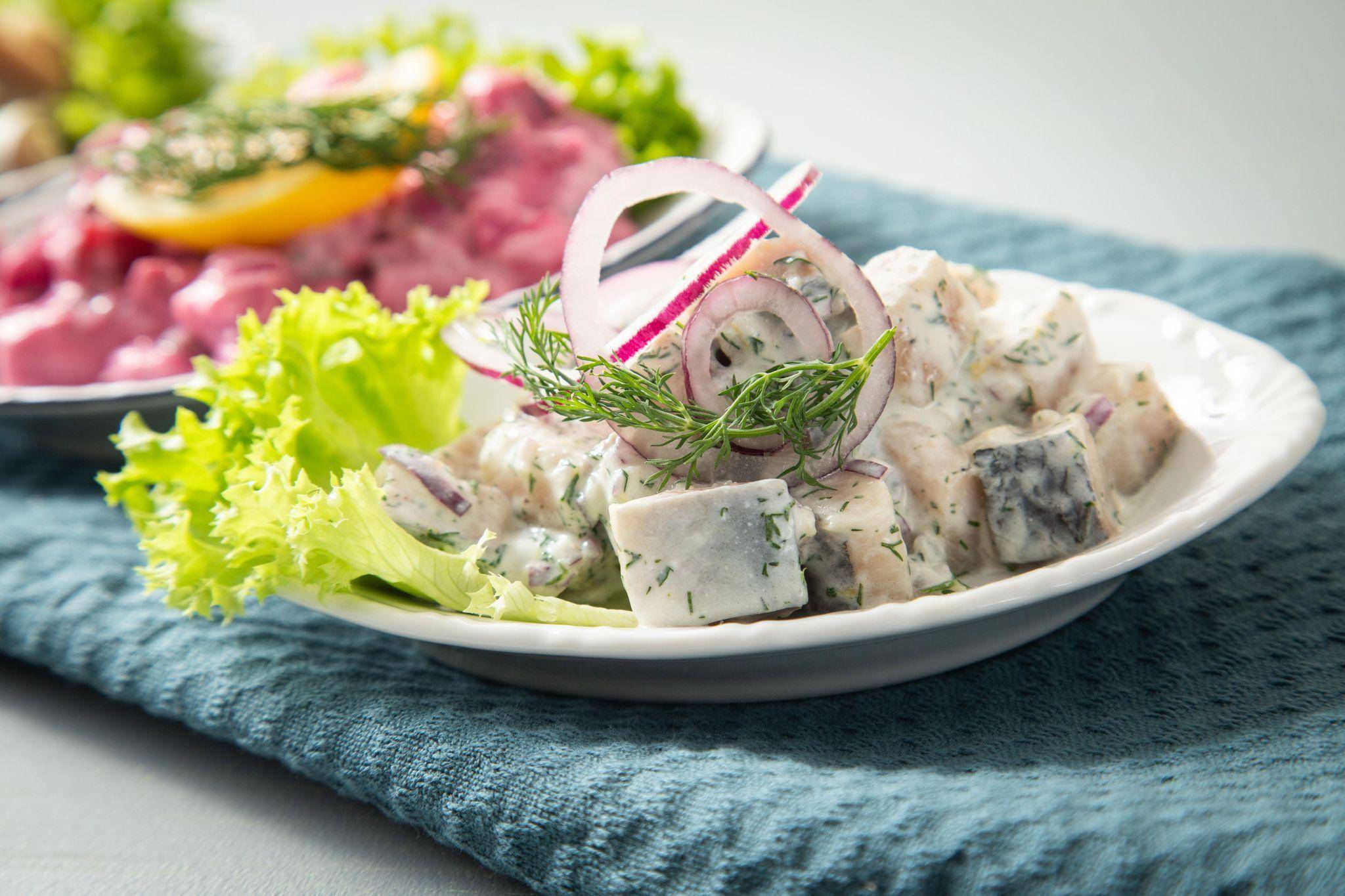 Christin Klose/dpa-tmn | Hering in einer seiner leckersten Formen als Salat. Hier wurde das klassische Sahne-Dressing durch leichteren Sauerrahm und Joghurt ersetzt und mit Dill und roter Zwiebel verfeinert.