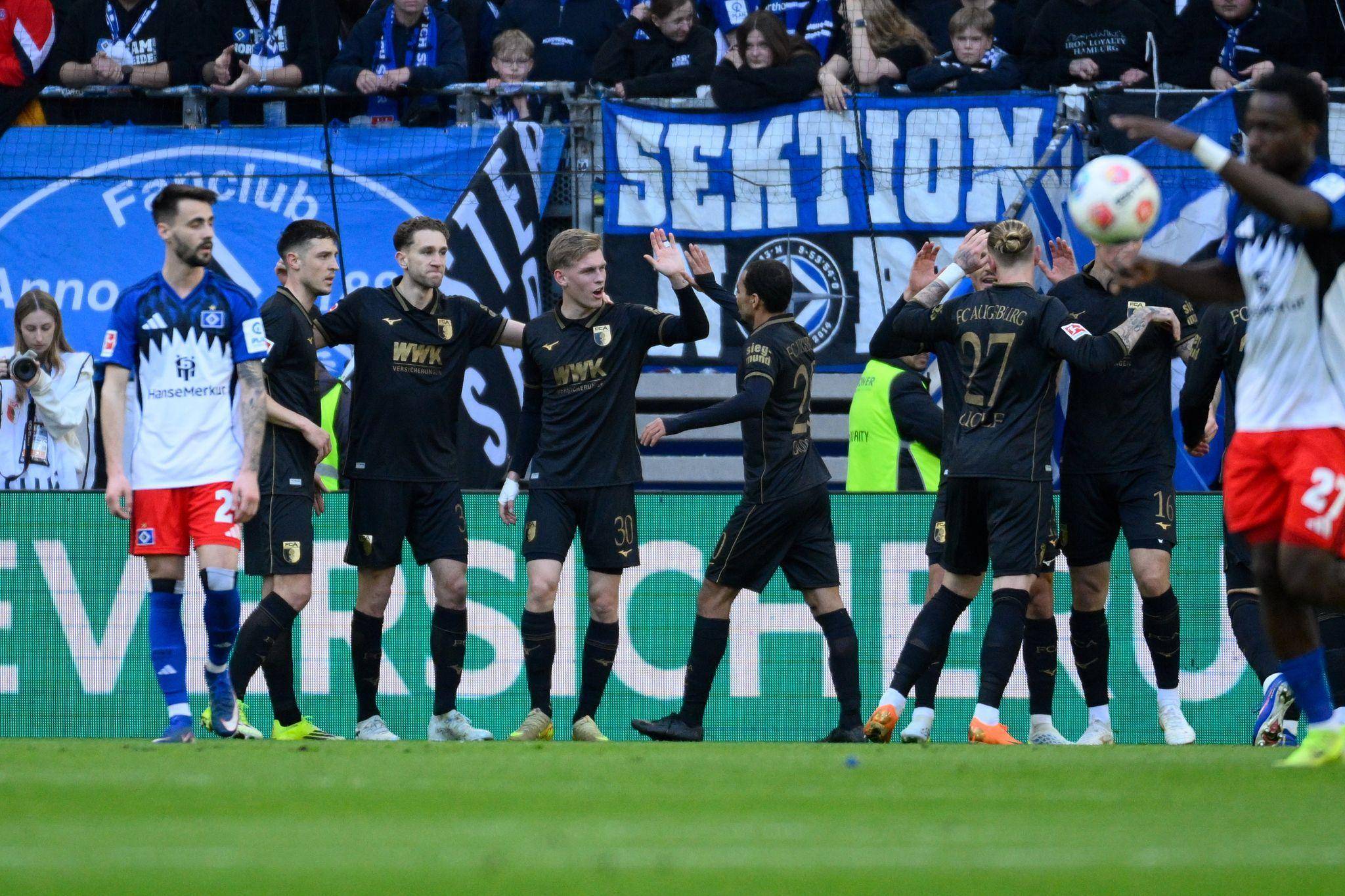 Glatzel blieb zunächst ohne Wirkung. Nach vorn ging beim HSV in der Anfangsphase nur selten etwas. Die Augsburger bereiteten mit ihrem frühen Pressing den Hamburgern einige Probleme und waren auch mit Ball zu Beginn gefälliger.
